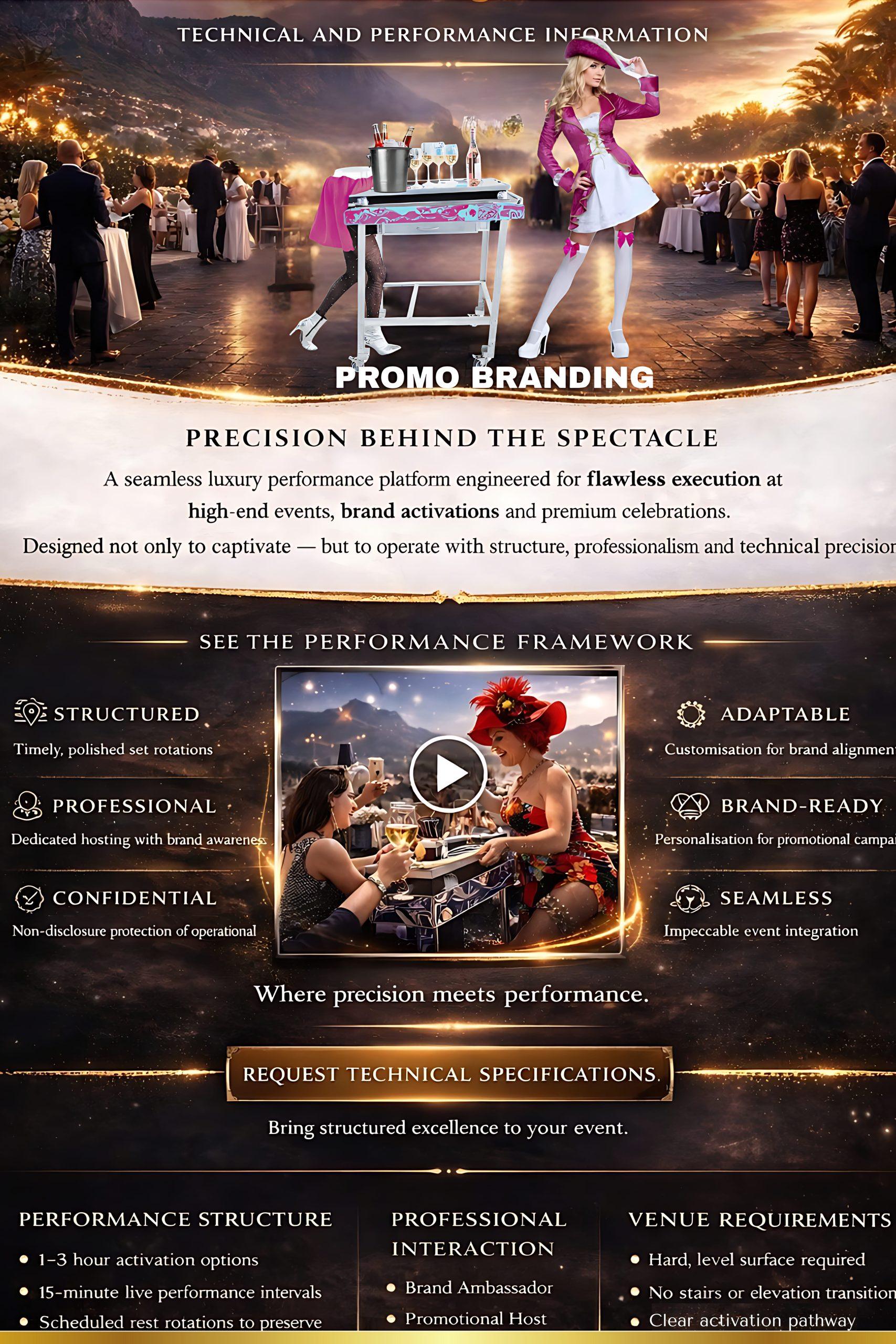 A seamless luxury performance platform engineered for flawless execution at high-end events, brand activations and premium celebrations. Designed not only to captivate — but to operate with structure, professionalism and technical precision.